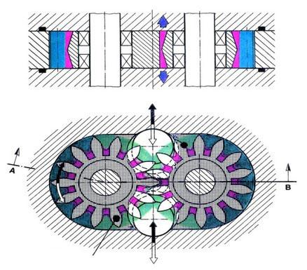RZ-LD系列微小流量齒輪流量計(jì)腔體內(nèi)有一對(duì)互相嚙合的齒輪作為轉(zhuǎn)子,兩個(gè)齒輪與腔體可以分別構(gòu)成一個(gè)固定的體積,稱為標(biāo)準(zhǔn)容積、流量就是通過(guò)計(jì)算一定時(shí)間內(nèi)來(lái)流通過(guò)標(biāo)準(zhǔn)容積的個(gè)數(shù)來(lái)計(jì)量。兩個(gè)精密配合的齒輪封閉在堅(jiān)固的腔體內(nèi),工作時(shí),被測(cè)液體推動(dòng)齒輪旋轉(zhuǎn),由非接觸式的檢測(cè)器檢測(cè)齒輪的轉(zhuǎn)動(dòng)。齒輪間的的間隙形成測(cè)量腔室。每齒經(jīng)過(guò)檢測(cè)器時(shí),檢測(cè)器產(chǎn)生一個(gè)脈沖。輸出的脈沖信號(hào)經(jīng)儀表容積/脈沖(Vm)換算和處理,顯示為滿足用戶要求的讀數(shù)。此流量計(jì)特別適用于精密、高壓、高黏度環(huán)境。